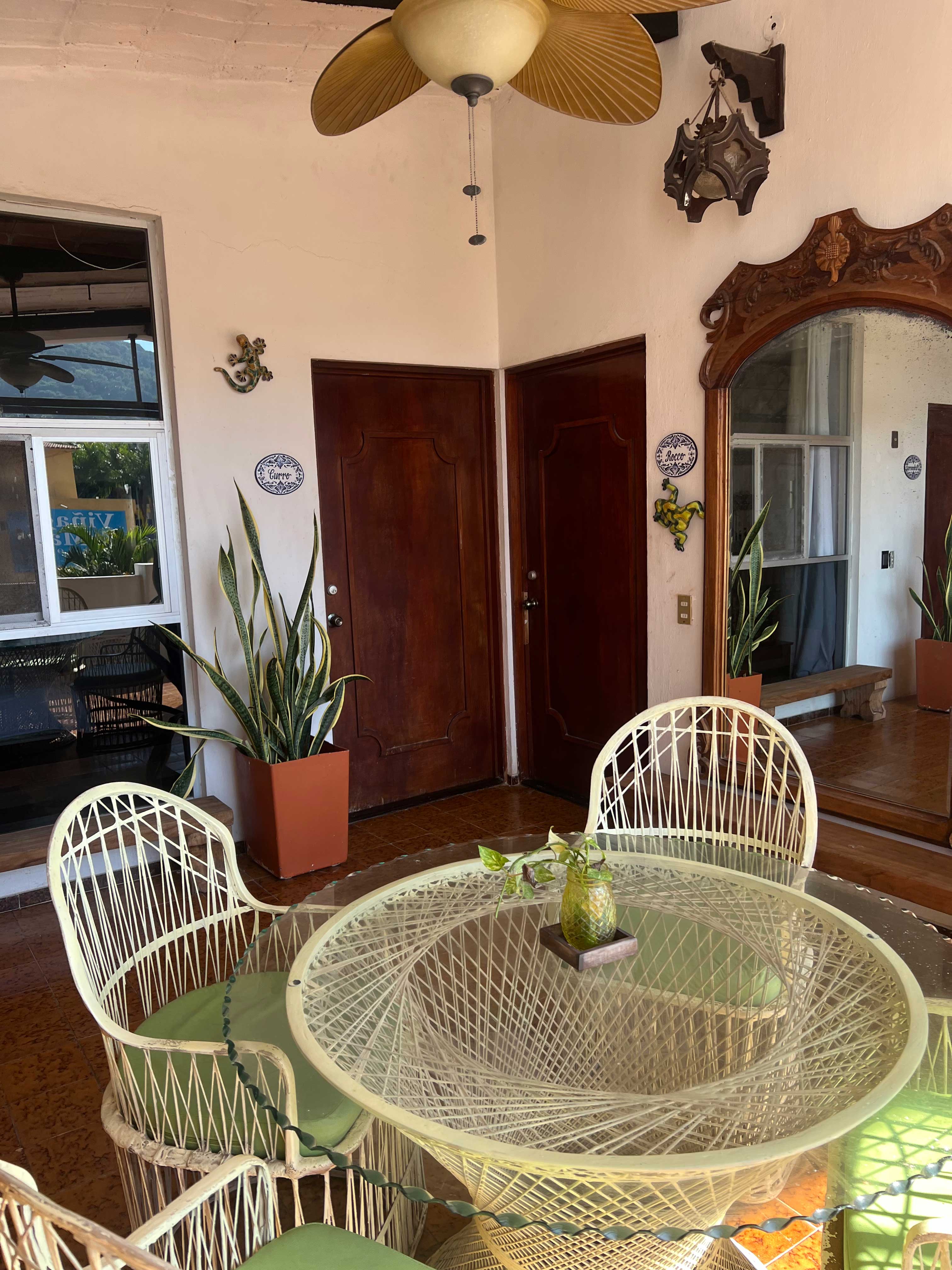 Este acogedor cuarto está diseñado para proporcionar una estancia cómoda y romántica para dos personas, en el encantador entorno de una casa de estilo rústico mexicano, a pasos de la playa y con acceso a una terraza común.